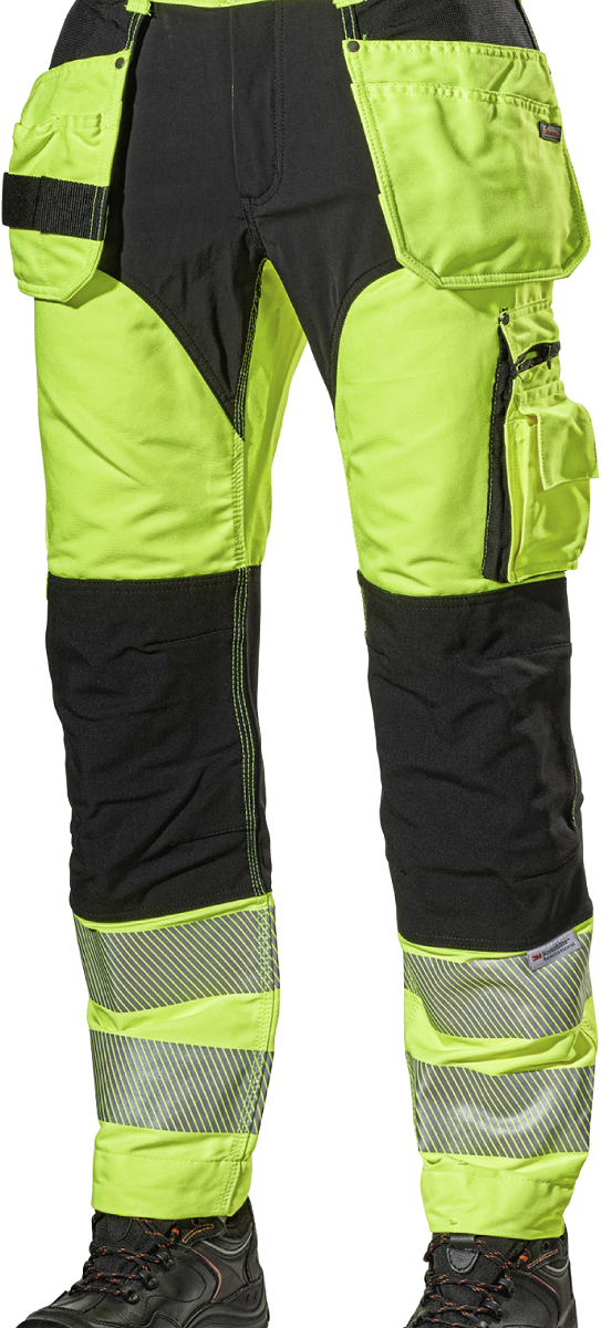 • Två avtagbara hängfickor med kardborrefäste. Två framfickor. Infällda stolpfickor bak. Höger benficka med tumstocksficka och pennfickor. Benficka med utvändig vinklad telefonficka försedd med magnetlås. Invändiga knäskyddsfickor i två höjdlägen.