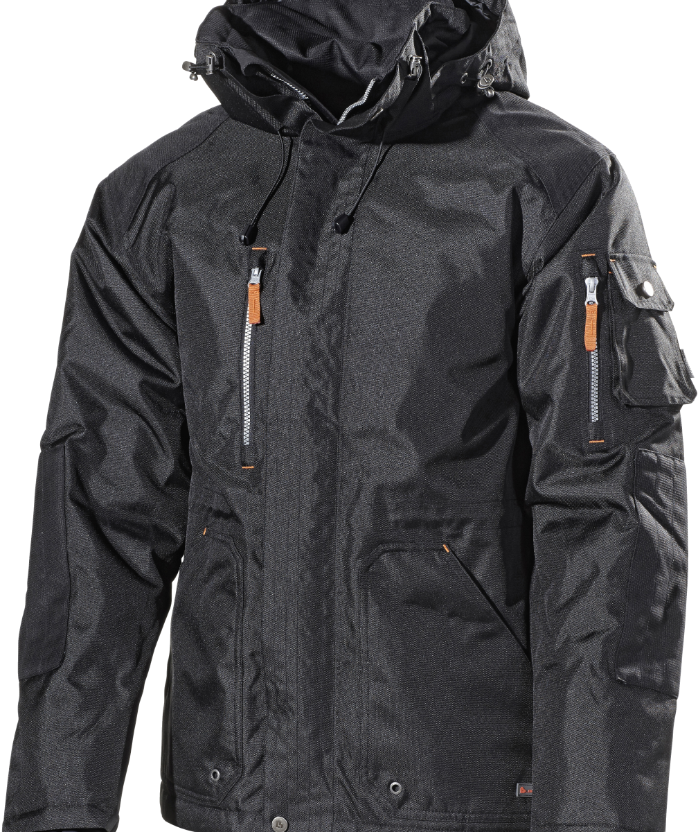Två utvändiga sidfickor. Höger bröstficka med band för ID-kort. Vänster bröstficka med dold öppning. Två innerfickor varav den ena är genomskinlig för att se användarens smartphone utan att behöva ta ut den ur fickan. Ögla för headset. Greppvänliga zip-pullers och dragskor.